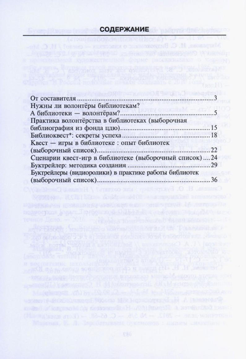 В этом выпуске можно найти небольшой список об опыте работы с волонтерами в библиотеках России и за рубежом, опубликованных как в печатных изданиях, так и на электронных носителях. Другие материалы дайджеста помогут библиотекарям в применении интересных форм работы, как библиоквесты и буктрейлеры, а также выборочные списки литературы к проведению квест-игр в библиотеках, и использованию буктрейлеров в практике детских библиотек
