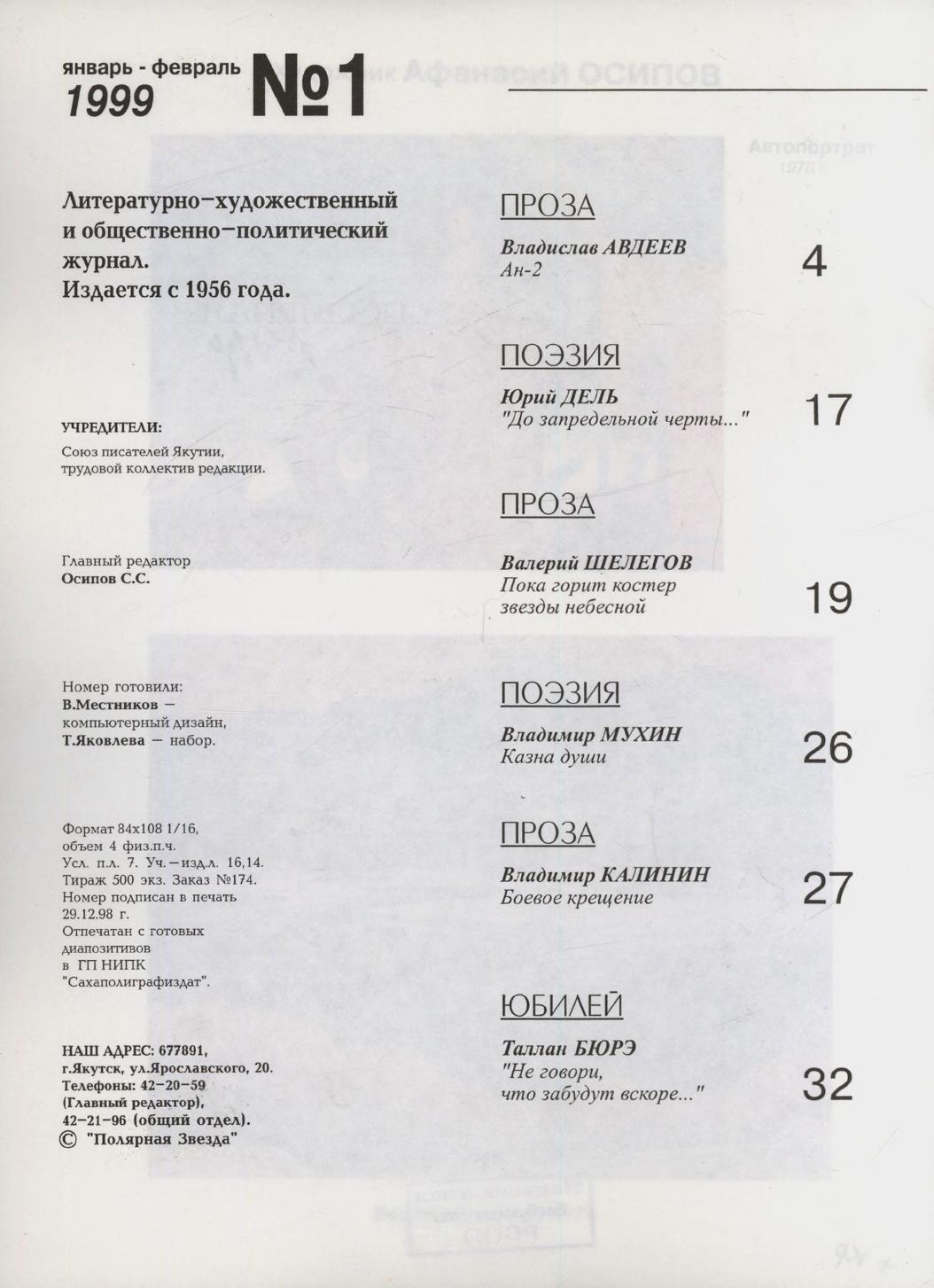 - Периодические издания Якутии (конец XIX – XXI вв.) > Журналы > Полярная звезда > 1999,