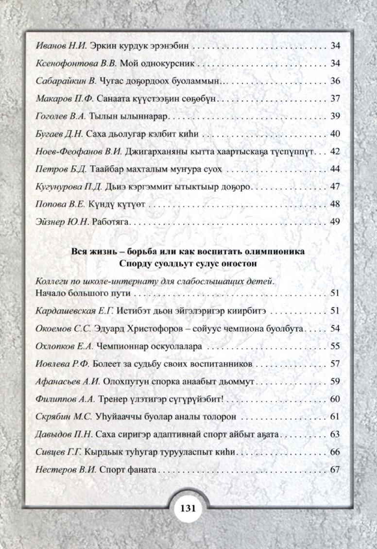 Федоров Борис Прокопьевич : к 60-летию заслуженного тренера РС (Я) и РФ, одного из основателей сурдлимпийского движения Якутии / [автор-составитель С. Б. Федорова] . - Якутск : Компания "Дани-Алмас", 2013. - 135, [1] с., [16] л. ил., портр.