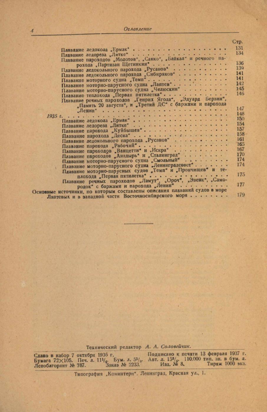 Описание плаваний судов в море Лаптевых и в Западной части Восточно-Сибирского моря с 1878 по 1935 гг. / П. К. Хмызников ; [ответственный редактор П. В. Орловский] ; Гидрографическое управление Главсевморпути при СНК СССР. - Ленинград : Издательство Главсевморпути, 1937. - 180 с. - 1000 экз. В предлагаемой работе сделан основной упор на характеристику каждого плавания, навигационных условий его и даты прохождения того или иного пункта. Остальные моменты плаваний либо совсем не освещены, либо о них упомянуто попутно. Это сделано для достижения основной цели книги, дать материал о прошлых плаваниях судоводителям-навигаторам.