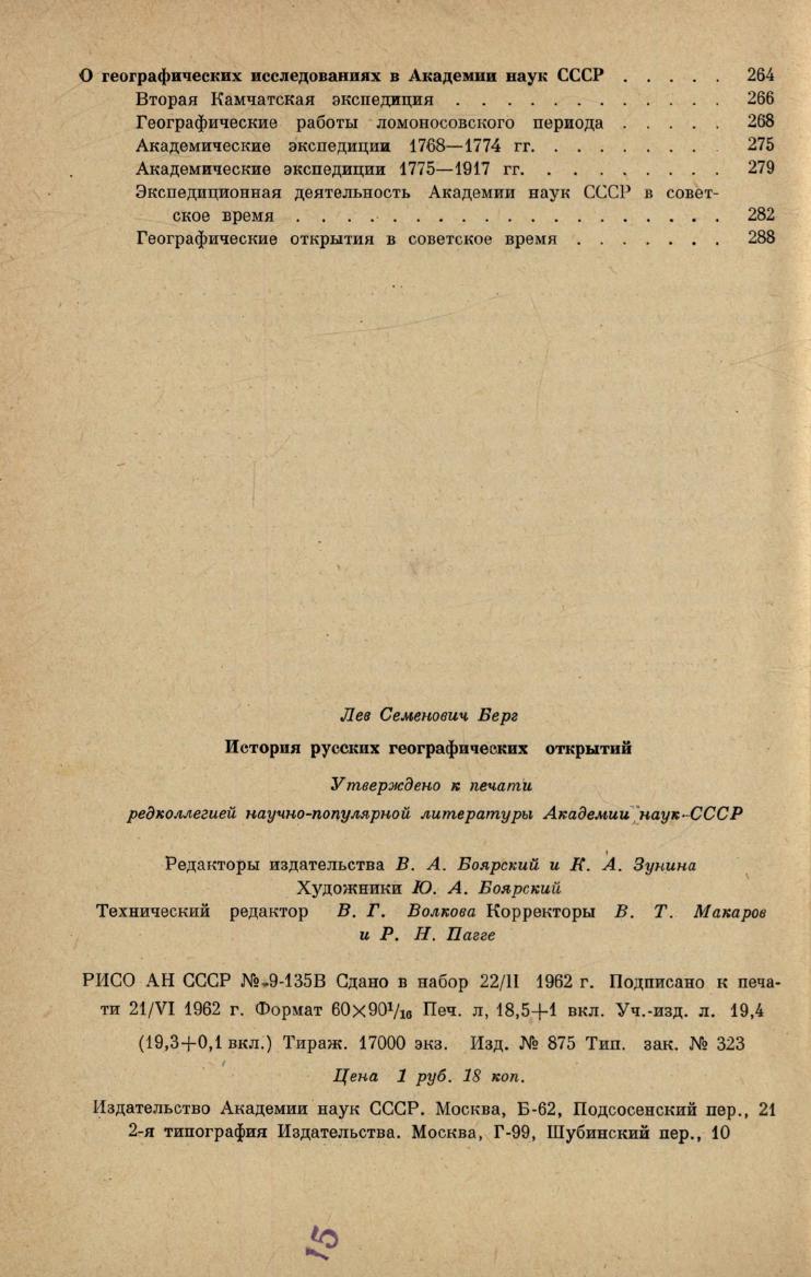 История русских географических открытий / Л. С. Берг. - [2-е изд., доп.]. - Москва : Изд-во Академии наук СССР, 1962. - 293, [3] с., [1] л. портр.
