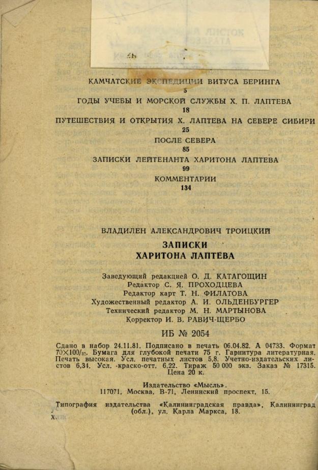 Записки Харитона Лаптева / В. А. Троицкий. - Москва : Мысль, 1982. - 144 с.