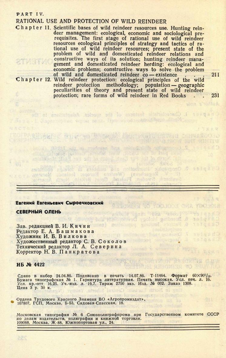 Освещены вопросы экологии, биологии, поведения, распространения, численности и морфологии северных оленей. Разработаны научные основы охраны и