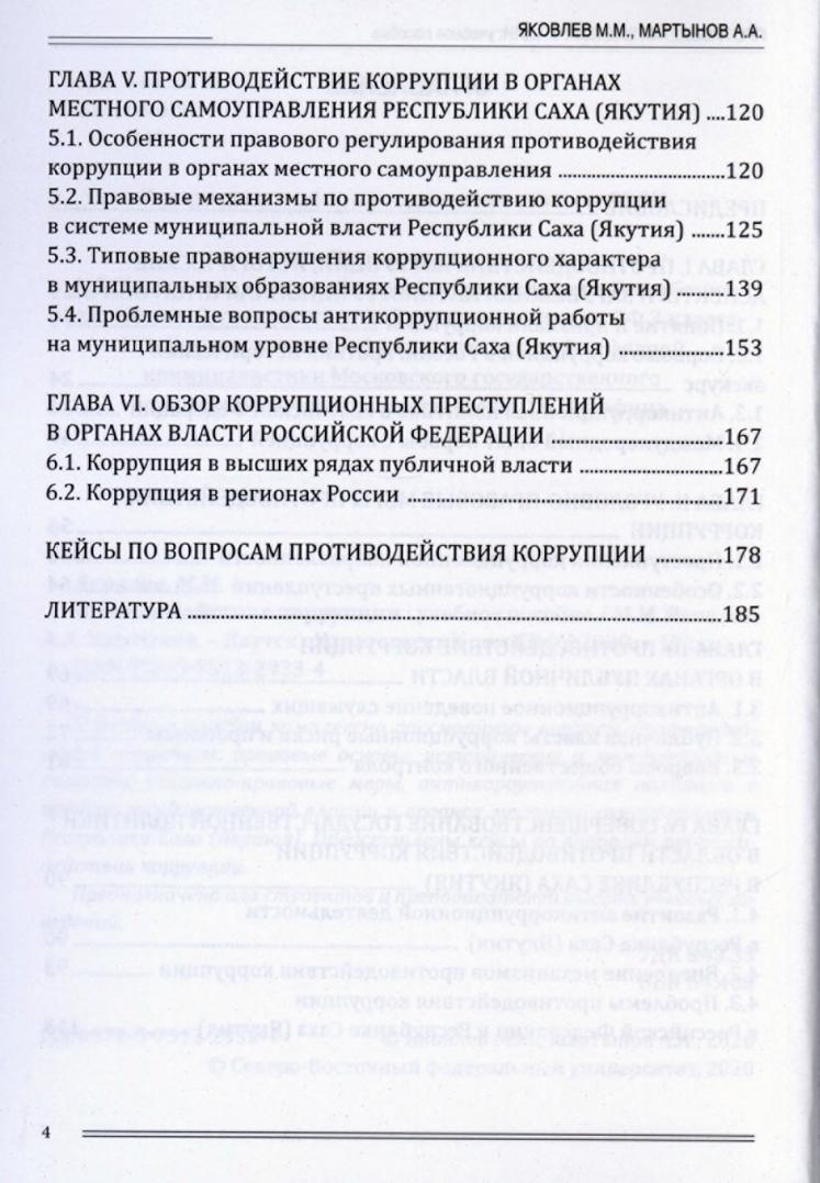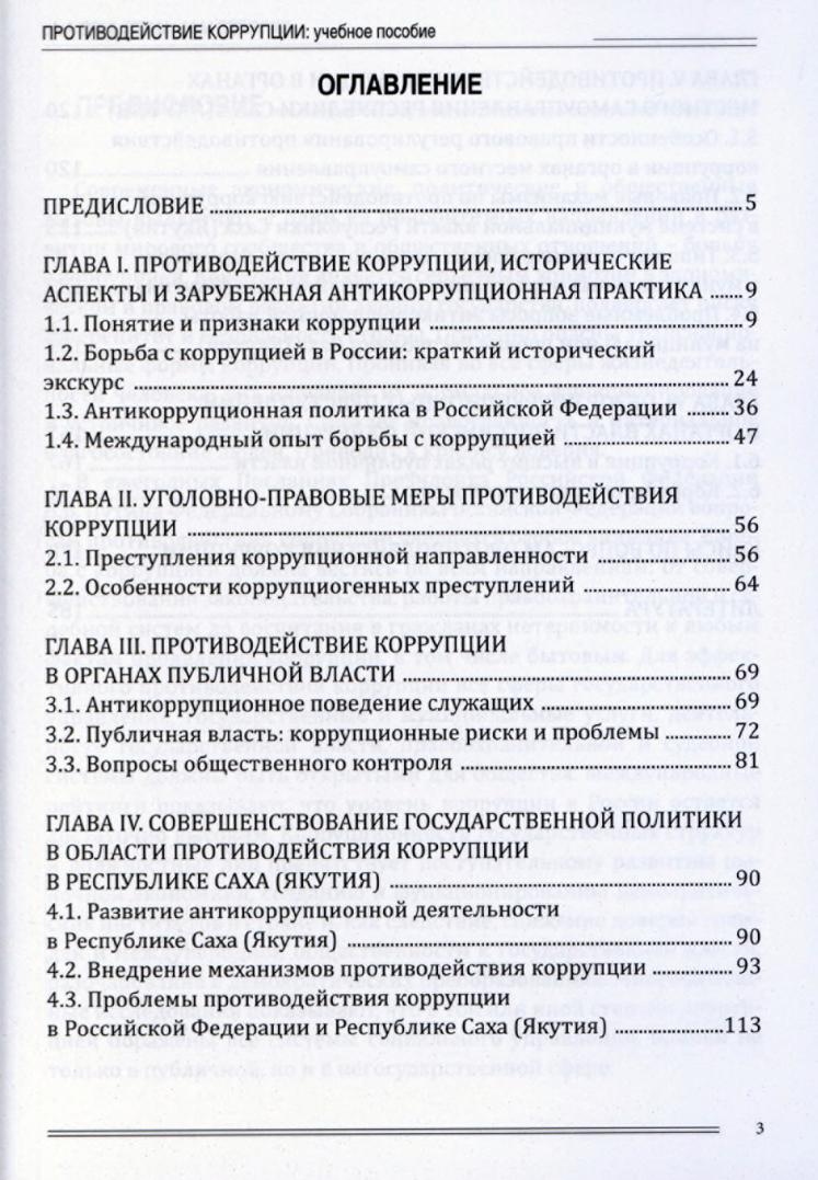 В учебном пособии комплексно рассмотрены вопросы противодействия коррупции: правовые основы, исторические и международные аспекты, уголовно-правовые меры, антикоррупционная политика в органах государственной власти и органах местного самоуправления Республики Саха (Якутия). Представлены кейсы по вопросам противодействия коррупции