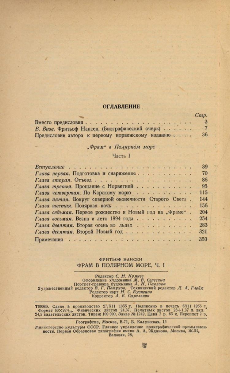 "Фрам" в Полярном море / Фритьоф Нансен ; [пер. З. И. Лопухиной ; ред. пер. и примеч. М. Б. Черненко]. - Москва : Географгиз, 1956. - 23 см. [Ч.] 1. - 1956. - 366, [2] с., [10] л. ил.
