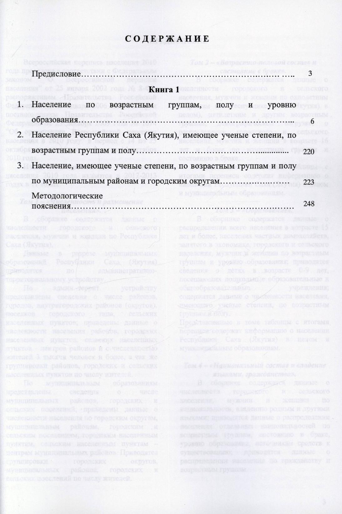 Итоги Всероссийской переписи населения 2010 года : (в 11 томах) / Федеральная служба государственной статистики, Территориальный орган Федеральной службы государственной статистики по Республике Саха (Якутия) ; [редколлегия: Т. А. Торговкина, Н. П. Попова]. - Официальное издание. - Якутск : ТО ФСГС по РС (Я), 2012-2014. - 30 см. - (Всероссийская перепись населения 2010 года). Итоги Всероссийской переписи населения 2010 года издаются в 2012-2014 годах в 11 томах: Том 1 - "Численность и размещение населения", Том 2 - "Возрастно-половой состав и состояние в браке", Том 3 - "Образование", Том 4 - "Национальный состав и владение языками, гражданство", Том 5 - "Источники средств к существованию", Том 6 - "Число и состав домохозяйств", Том 7 - "Экономически активное и экономически неактивное население", Том 8 - "Продолжительность проживания населения в месте постоянного жительства", Том 9 - "Жилищные условия", Том 10 - "Рождаемость", Том 11 - "Сводные итоги Всероссийской переписи населения 2010 года" . Т. 3, кн. 1: Уровень образования населения Республики Саха (Якутия) : (в 2-х книгах). - Официальное издание. - 2012. - 252 с.