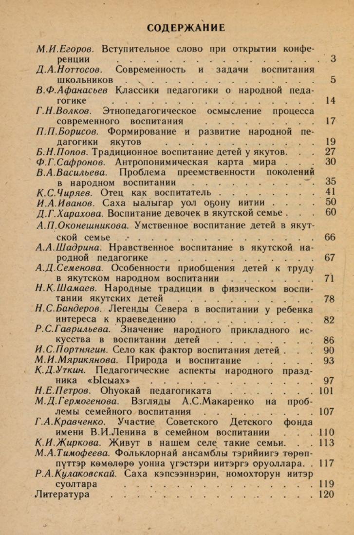 Из истоков народной педагогики якутов : (материалы научно-практической конференции, проведенная 20-21 июня 1990 г. в с. Оросу Верхневилюйского района Якутская-Саха ССР) / [под редакцией кандидат педагогических наук П. П. Борисова]. - Якутск : [Полиграфист], 1992. - 120, [2] с.