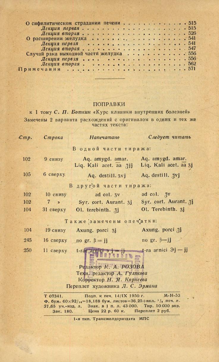 Курс клиники внутренних болезней и клинические лекции : в 2 томах / вступ. статья действ. чл. АМН СССР проф. А. Л. Мясникова ["Сергей Петрович Боткин"] ; подгот. текст, ил. и сост. примеч. канд. мед. наук К. А. Розова. - М. : Медгиз, 1-я тип. Трансжелдориздата, 1950. Т. 2: Клинические лекции. - 1950. - 580 с., 1 л. портр.
