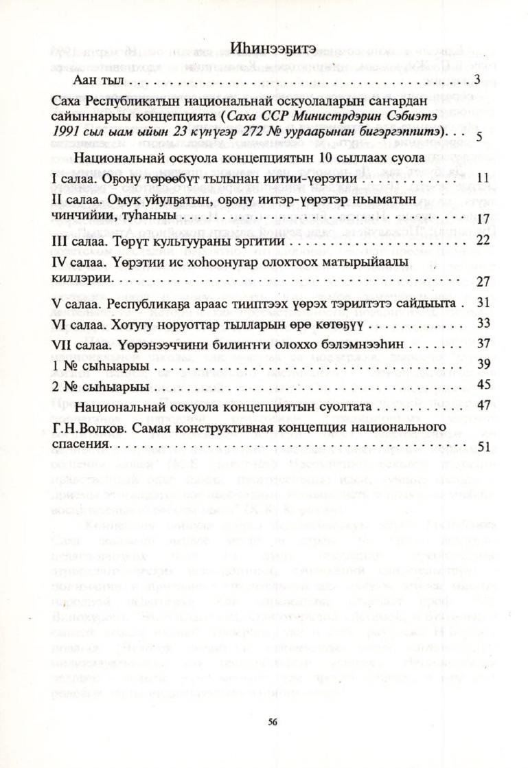 Саха Республикатыгар национальнай оскуоланы саҥардан сайыннарыы концепциятын 10 сыла (1991 - 2001) : концепция суола уонна суолтата / Национальнай оскуоланы өйүүр Фонда ; редактор Т. И. Петрова. - Дьокуускай : [и. с.], 2001. - 56 с.