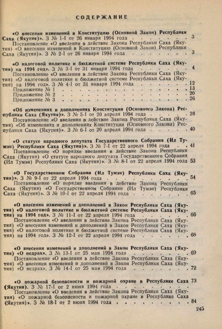 Сборник законов Республики Саха (Якутия) за 1994 год. Законы, принятые на сессиях Государственного Собрания (Ил Тумэн) Республики Саха (Якутия) первого созыва...