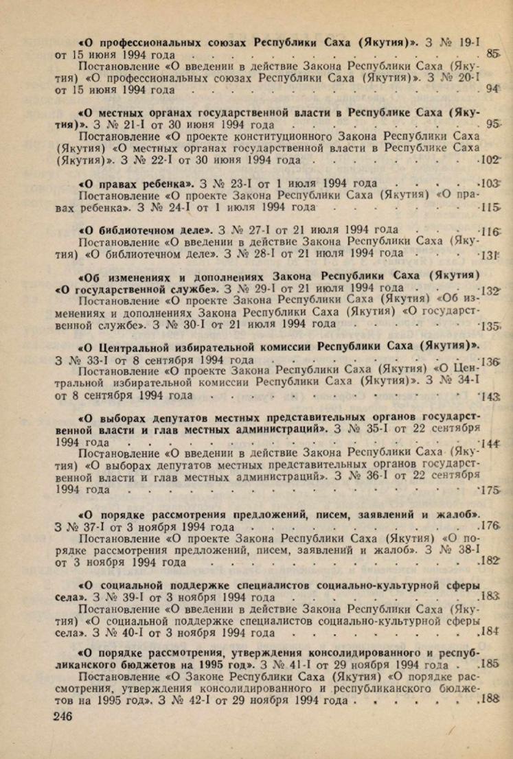 Загл. обл.: Сборник законов Республики Саха (Якутия) за 1994 год.