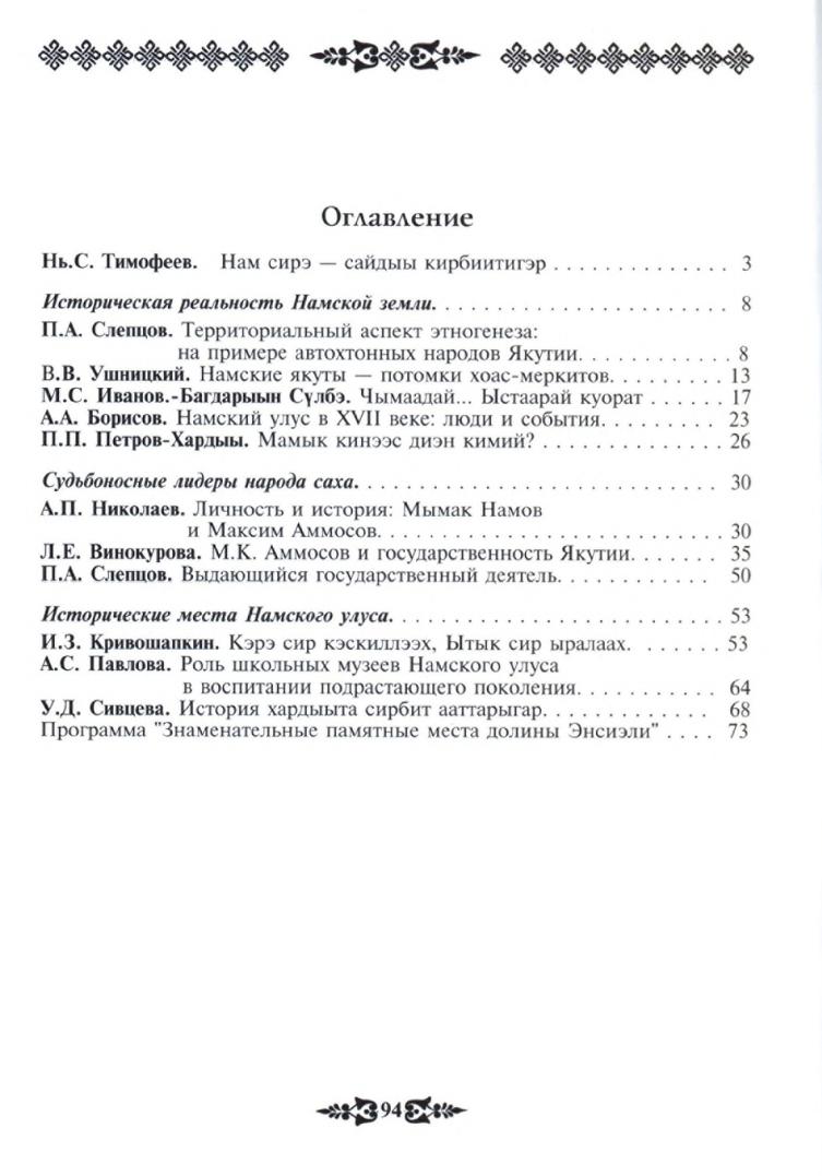 Сборник включает научные статьи, посвященные исторической топонимике, выдающимся личностям и важнейшим событиям Намской земли