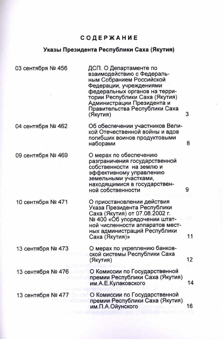 - 3. Сборник указов и распоряжений Президента Республики Саха (Якутия), 2002, №7 (107) (июль)
