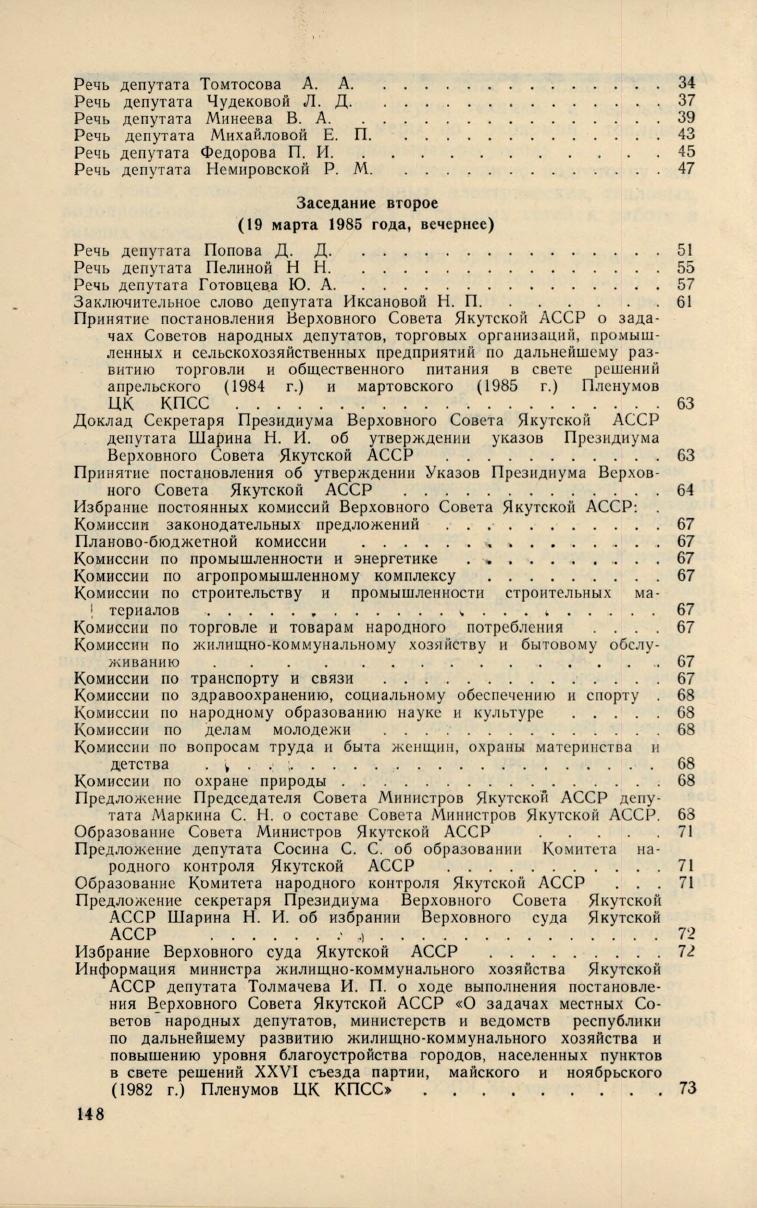 Заседания Верховного Совета Якутской АССР одиннадцатого созыва Первая сессия (19 марта 1985 года): стенографический отчет