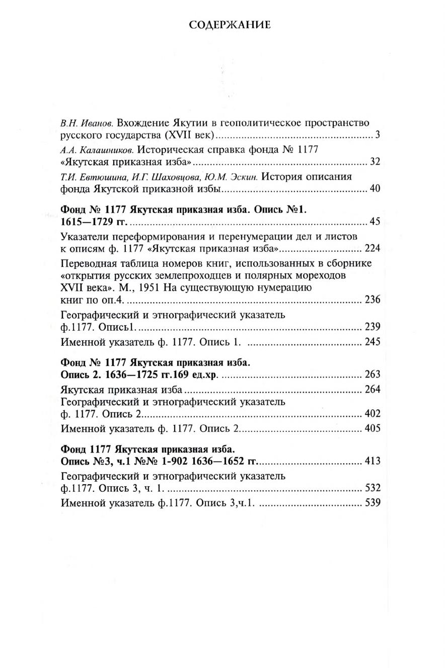 Справочник содержит сведения о составе и содержании документов фонда N 1177 "Якутская приказная изба" XVII- начала XVIII вв.