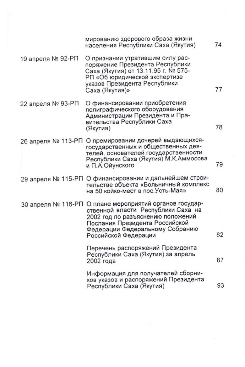 - 2. Сборник указов и распоряжений Президента Республики Саха (Якутия), 2002, №7 (107) (июль)