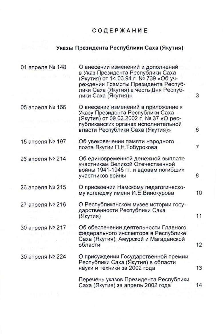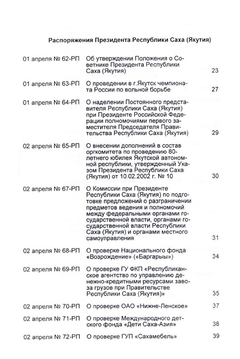 - 1. Сборник указов и распоряжений Президента Республики Саха (Якутия), 2002, №3 (103) (март)