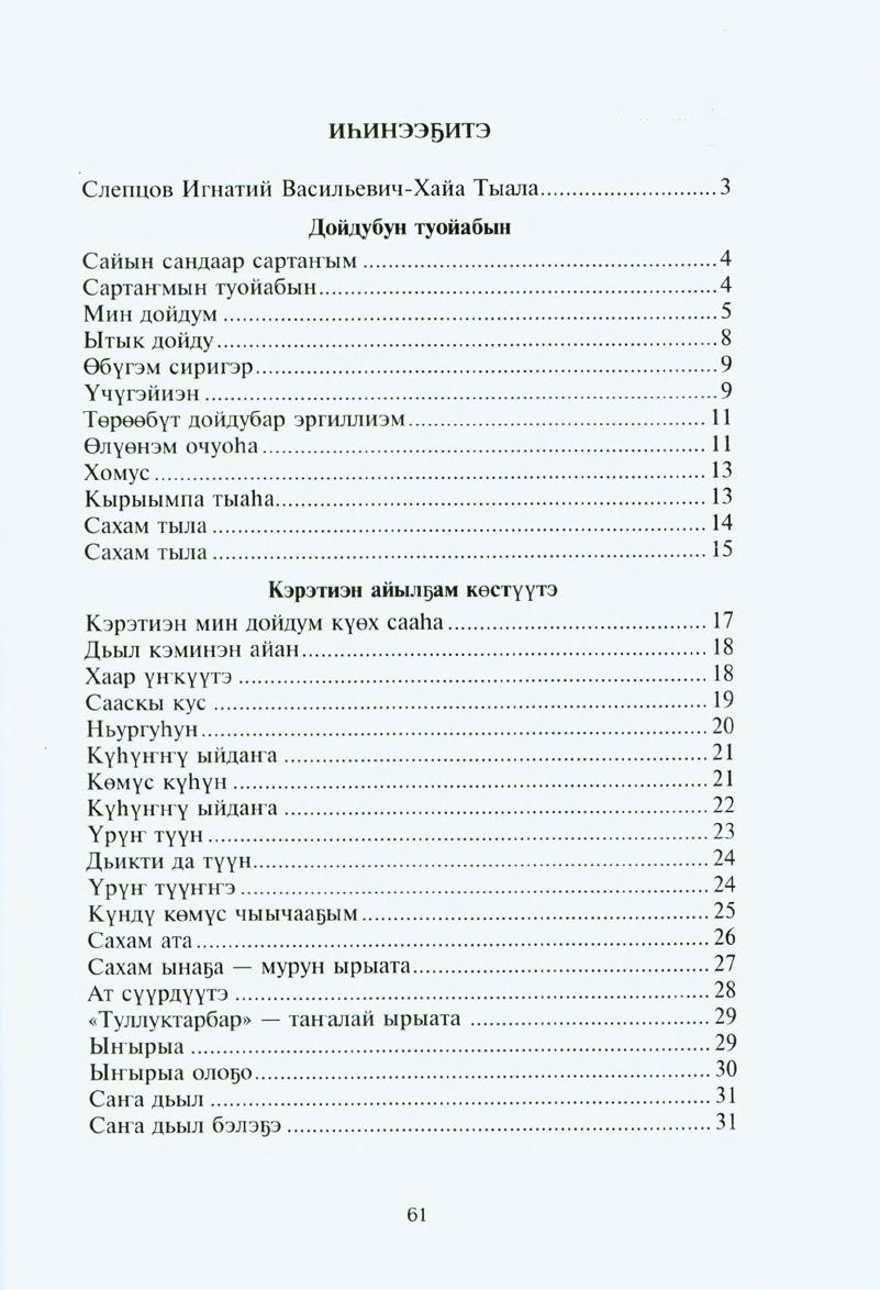 Слепцов Игнатий Васильевич родом с Верхоянского улуса, пишет стихи под псевдонимом Хайа Тыала. Книга проиллюстрирована фотографиями автора