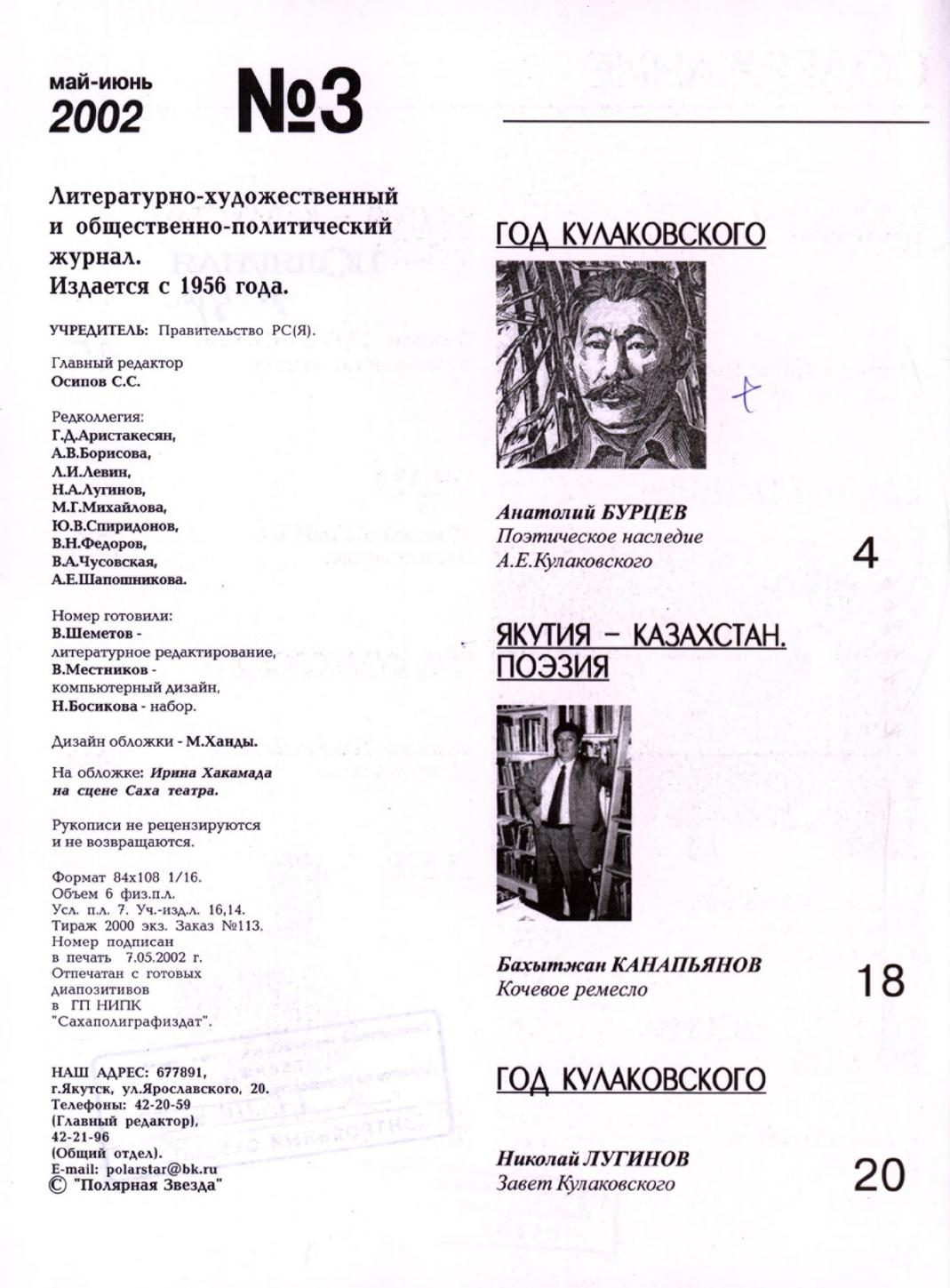 - Периодические издания Якутии (конец XIX – XXI вв.) > Журналы > Полярная звезда > 2002,