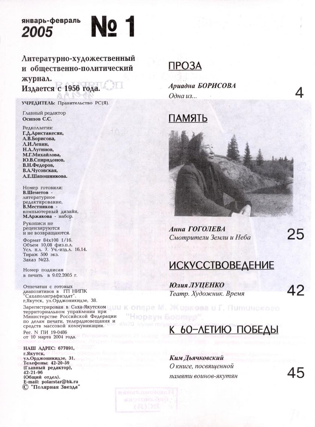 - 1. Полярная звезда: литературно-художественный и общественно-политический журнал, 2005, №2 (март-апрель)