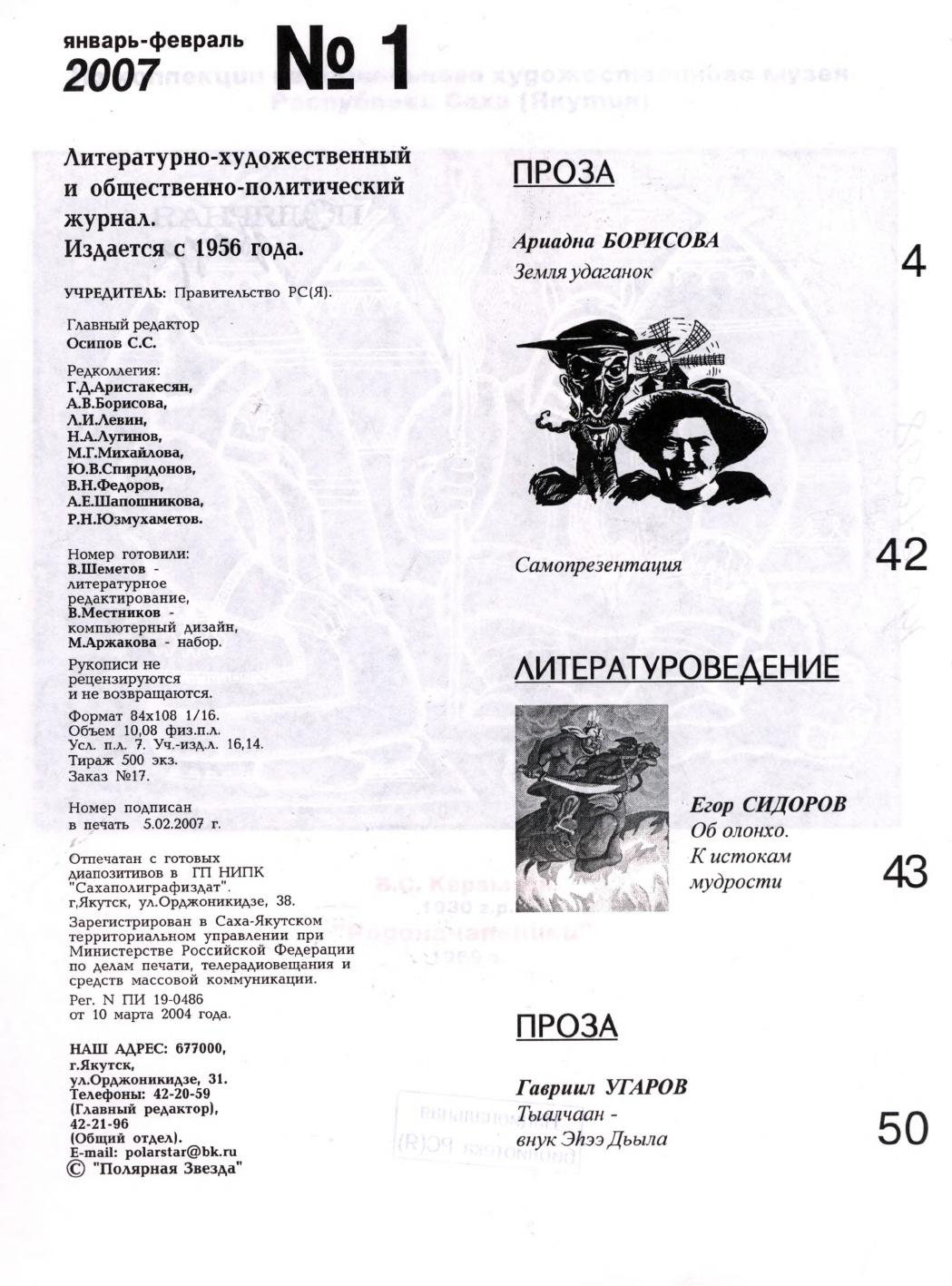 - Периодические издания Якутии (конец XIX – XXI вв.) > Журналы > Полярная звезда > 2007,