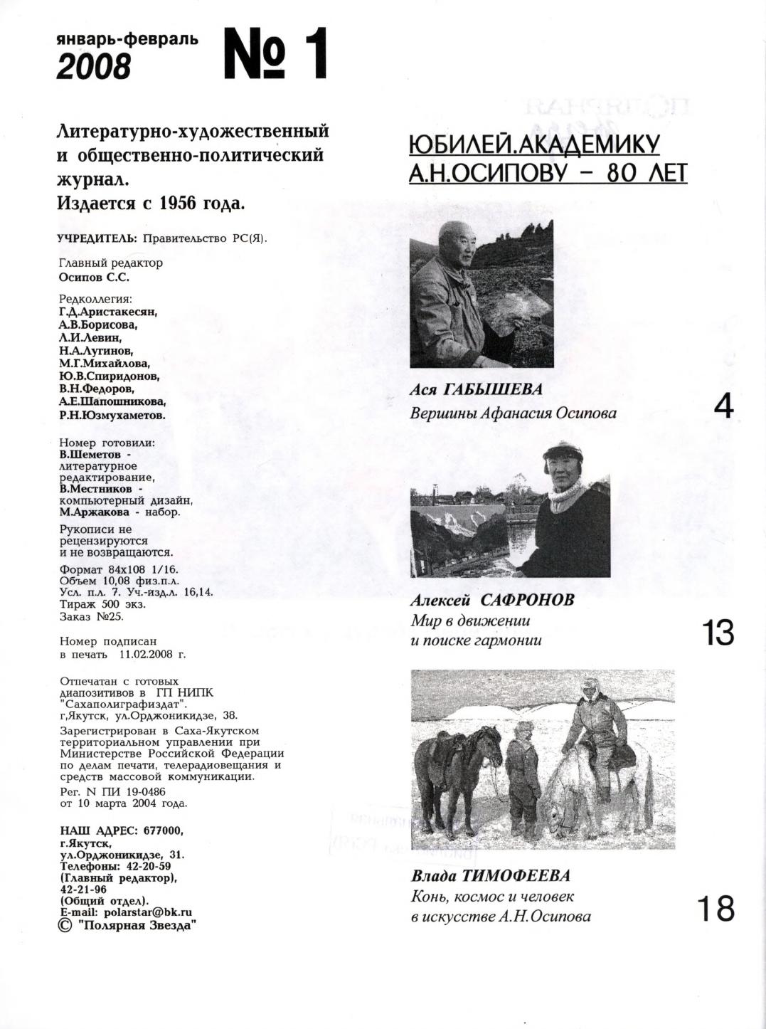- Периодические издания Якутии (конец XIX – XXI вв.) > Журналы > Полярная звезда > 2008,