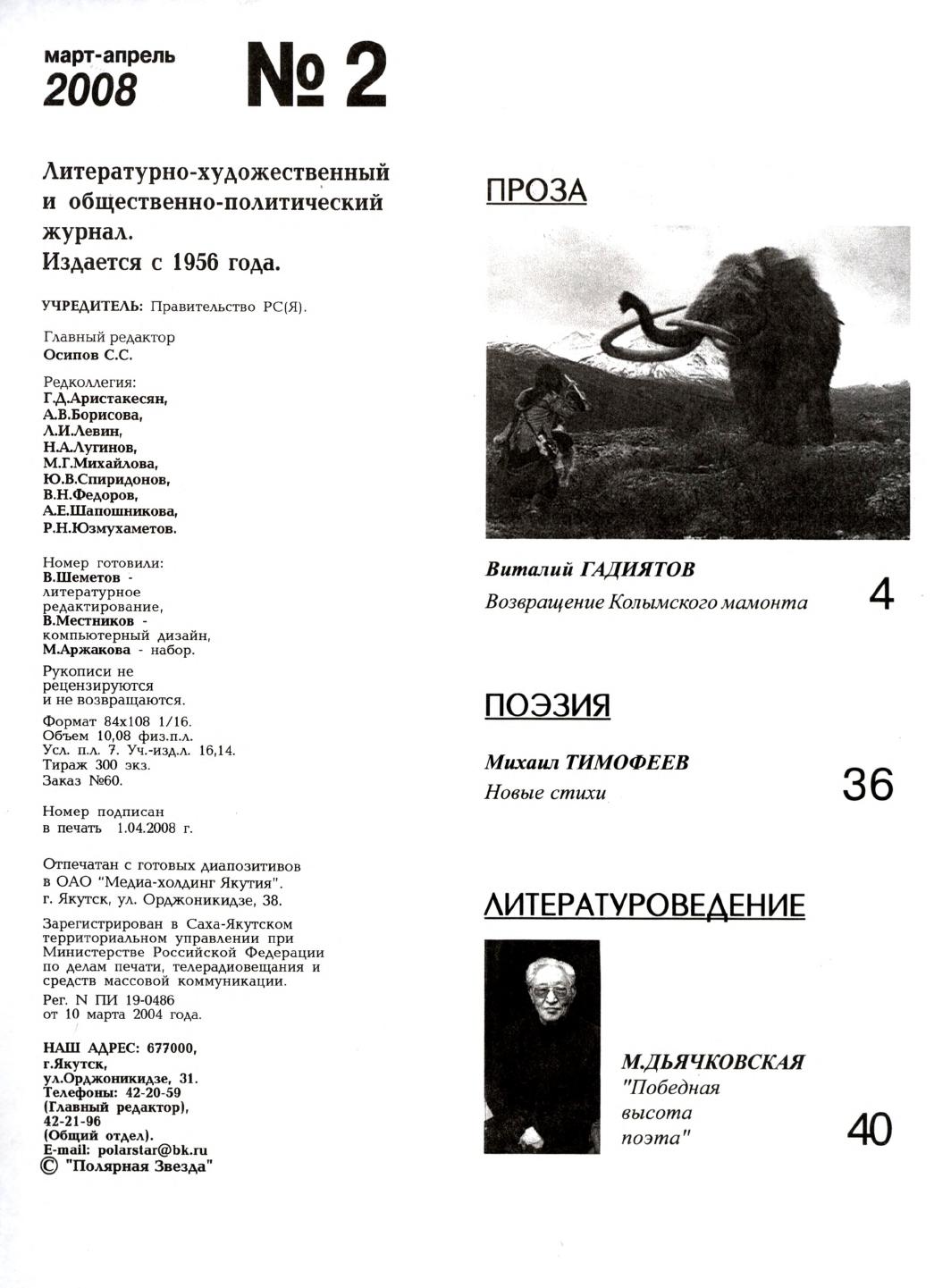 - Периодические издания Якутии (конец XIX – XXI вв.) > Журналы > Полярная звезда > 2008,