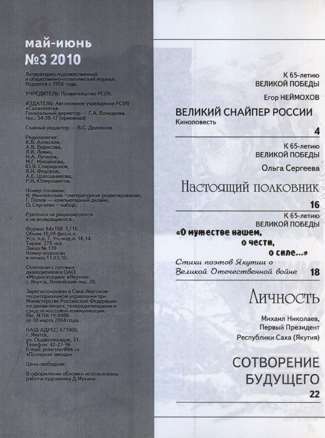 - Периодические издания Якутии (конец XIX – XXI вв.) > Журналы > Полярная звезда > 2010,