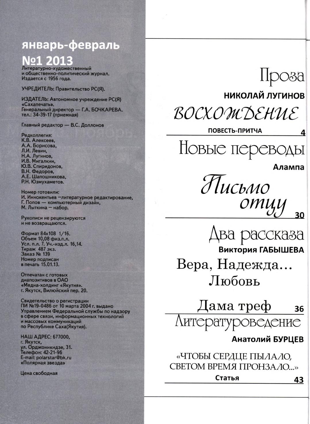 - Периодические издания Якутии (конец XIX – XXI вв.) > Журналы > Полярная звезда > 2013,