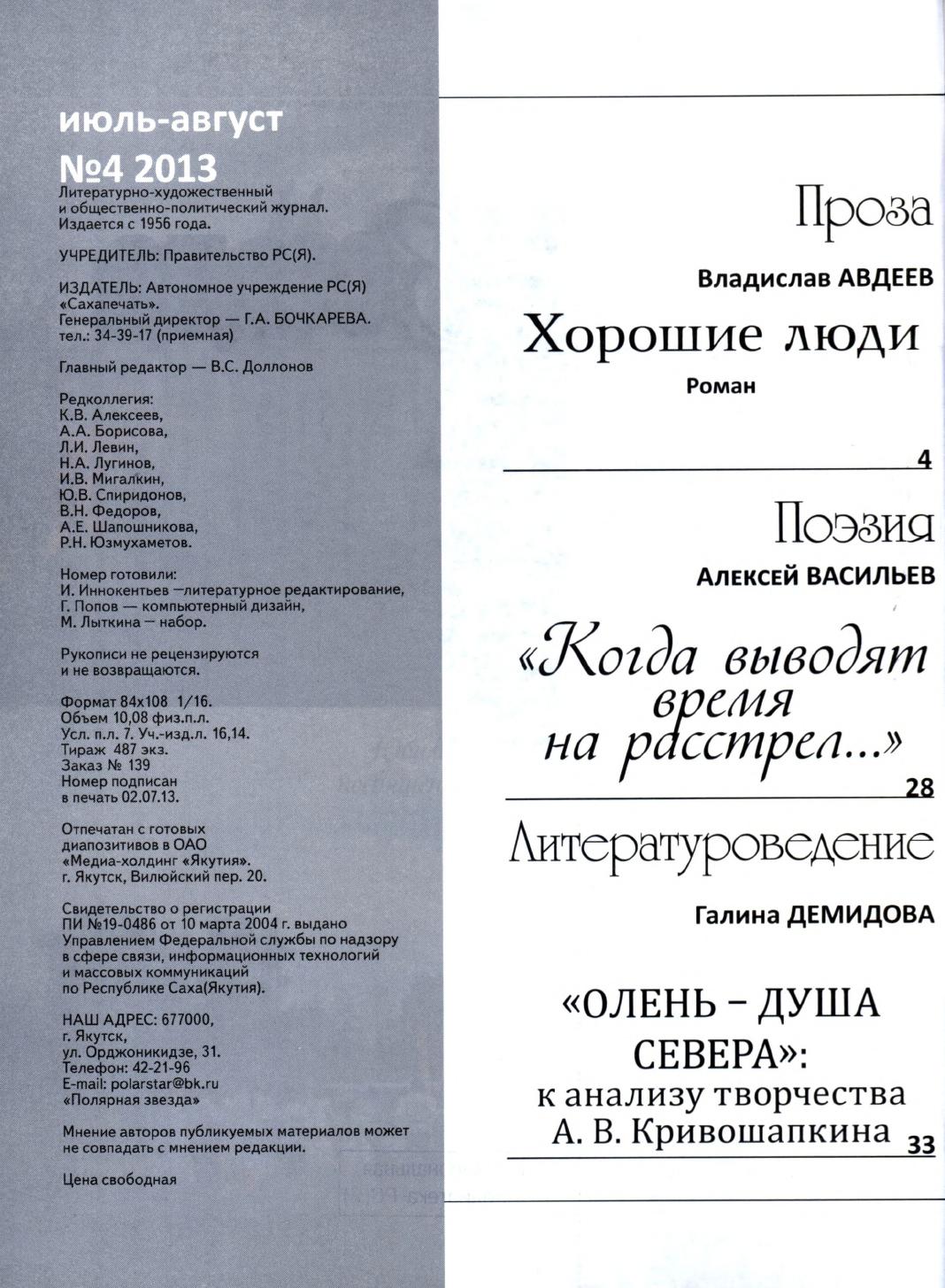 - Периодические издания Якутии (конец XIX – XXI вв.) > Журналы > Полярная звезда > 2013.