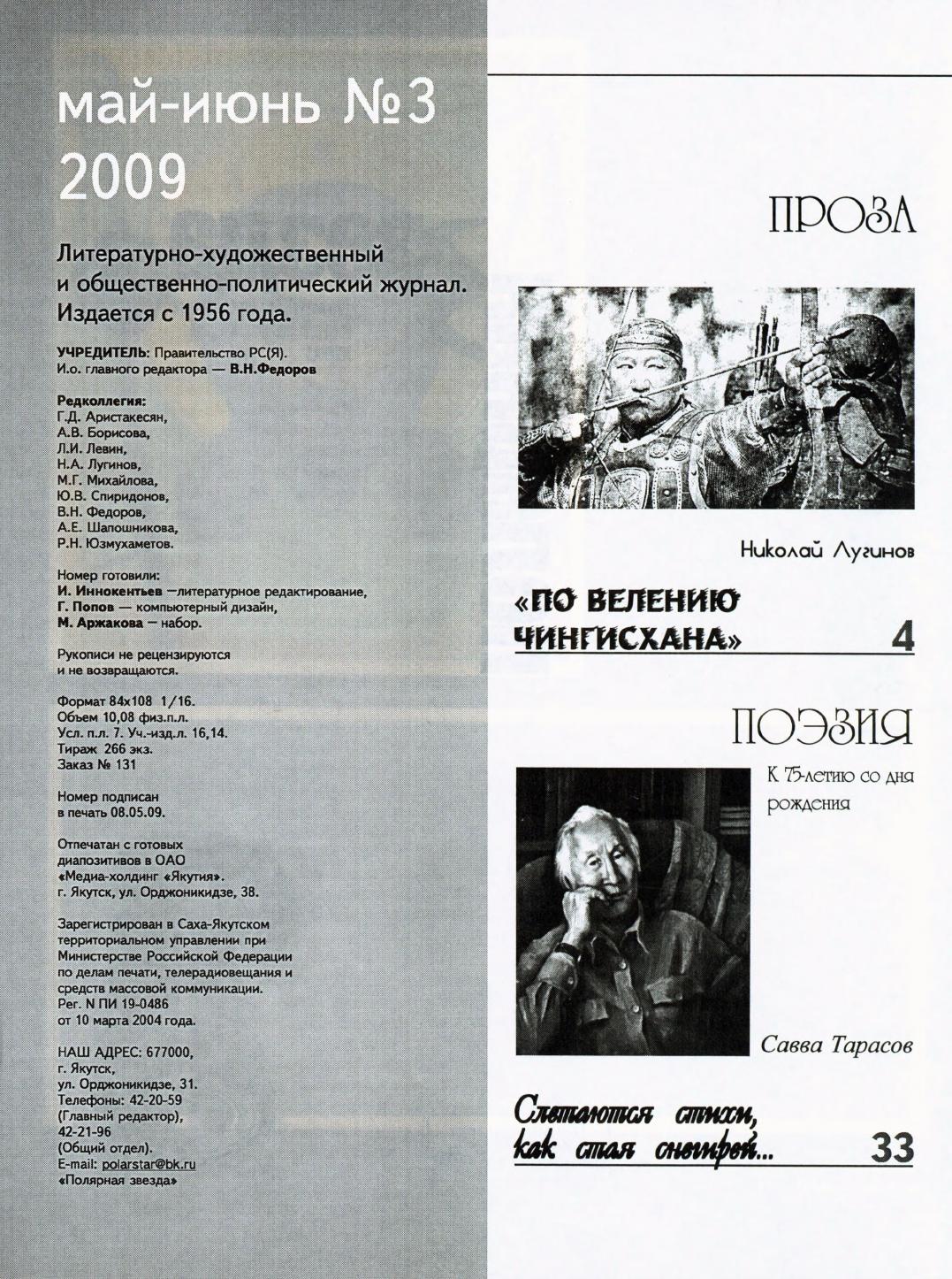 - Периодические издания Якутии (конец XIX – XXI вв.) > Журналы > Полярная звезда > 2009,