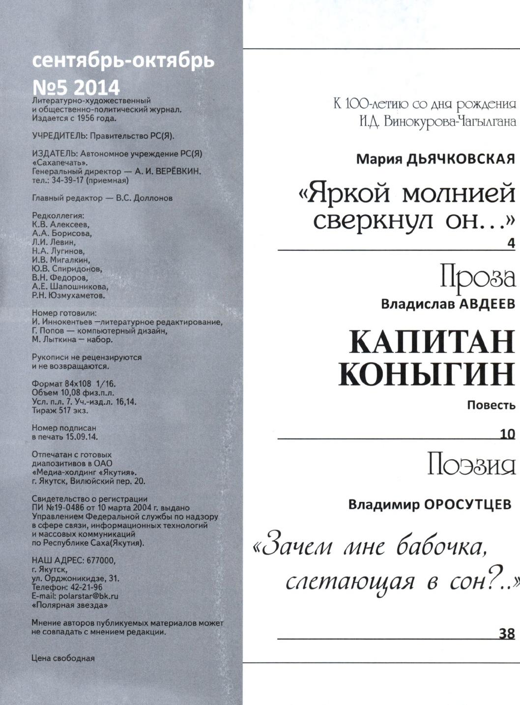 - Периодические издания Якутии (конец XIX – XXI вв.) > Журналы > Полярная звезда > 2014.