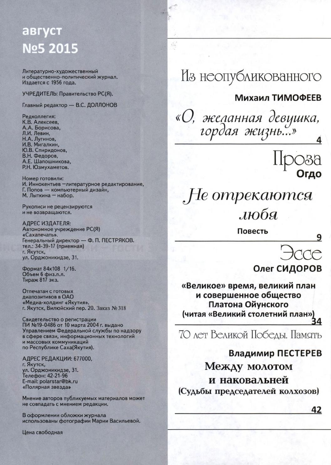- Периодические издания Якутии (конец XIX – XXI вв.) > Журналы > Полярная звезда > 2015,