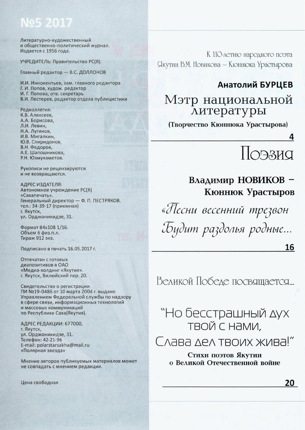 - Периодические издания Якутии (конец XIX – XXI вв.) > Журналы > Полярная звезда > 2017,