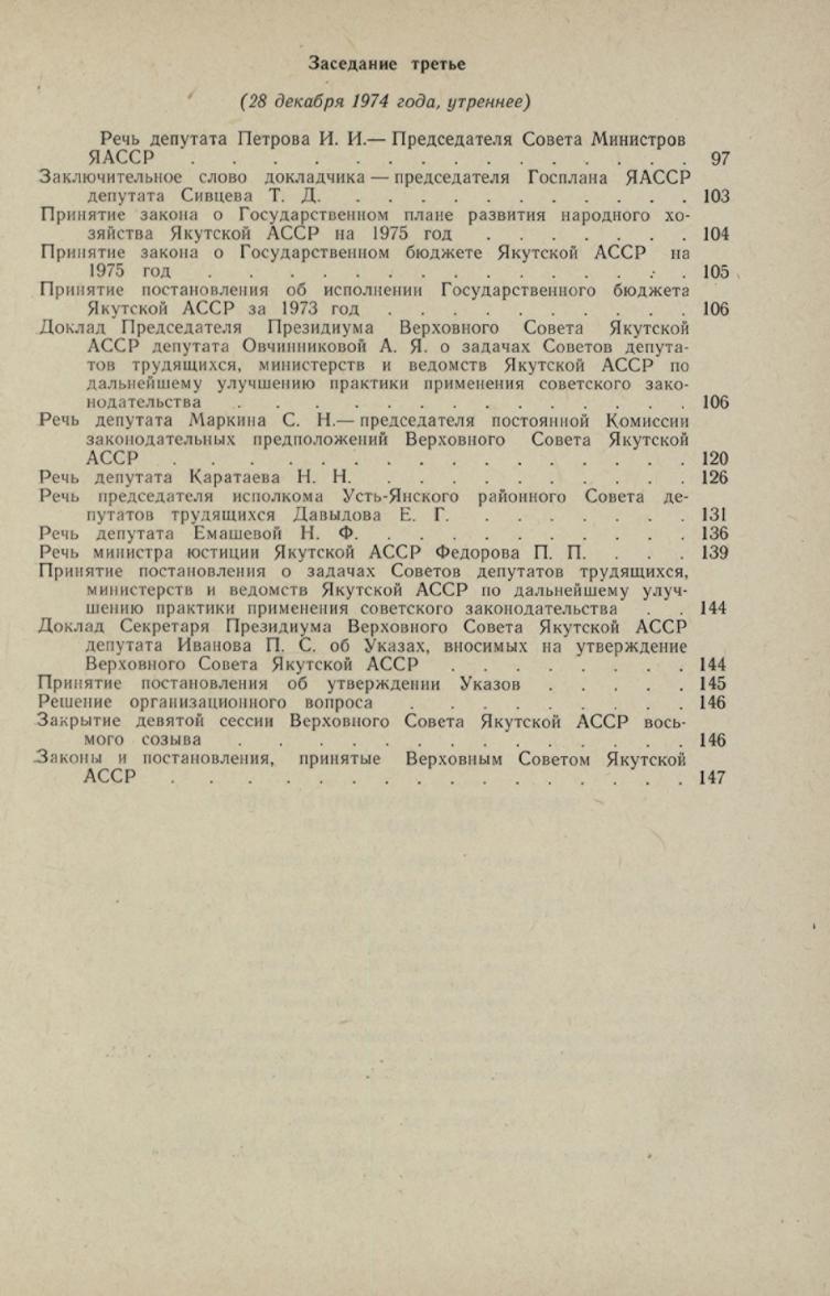 Седьмая сессия, 27-28 декабря 1973 года, 1974 - 3. Заседания Верховного Совета Якутской АССР восьмого созыва: стенографический отчет