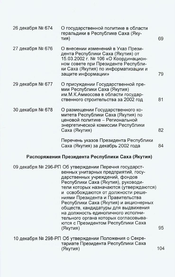 - 2. Сборник указов и распоряжений Президента Республики Саха (Якутия), 2002, №4 (104) (апрель)
