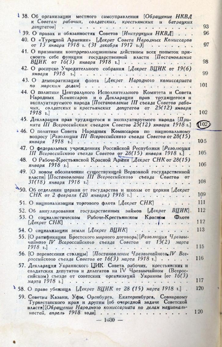 После Октябрьской революции были приняты такие важные правовые акты, как Декларация прав трудящихся и эксплуатируемых классов, Декрет о мире и Декрет о земле, ставшие основой первой советской конституции РСФСР 1918 года. Она заложила основы государственного контроля промышленности, национализации земли и банков, утверждала диктатуру пролетариата и отделение церкви от государства.
