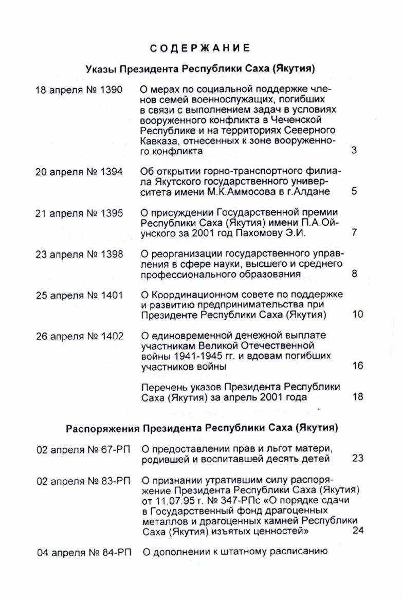 Март 2001 года, 2001, №3 (91) (март) - 3. Сборник указов и распоряжений Президента Республики Саха (Якутия)