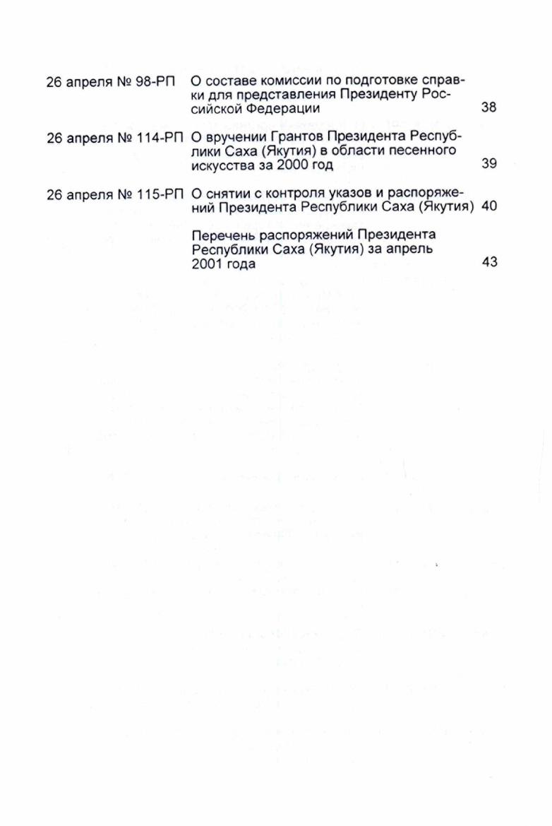 Май 2001 года, 2001, №5 (93) (май) - 4. Сборник указов и распоряжений Президента Республики Саха (Якутия)