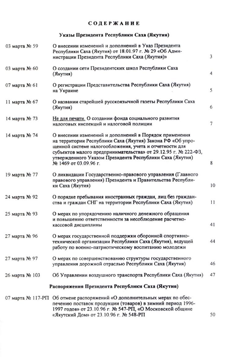 Сборник указов и распоряжений Президента Республики Саха (Якутия)