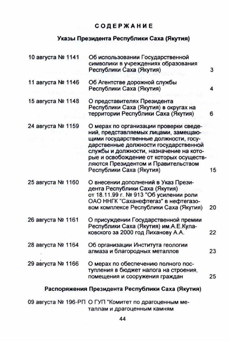 Сборник указов и распоряжений Президента Республики Саха (Якутия)