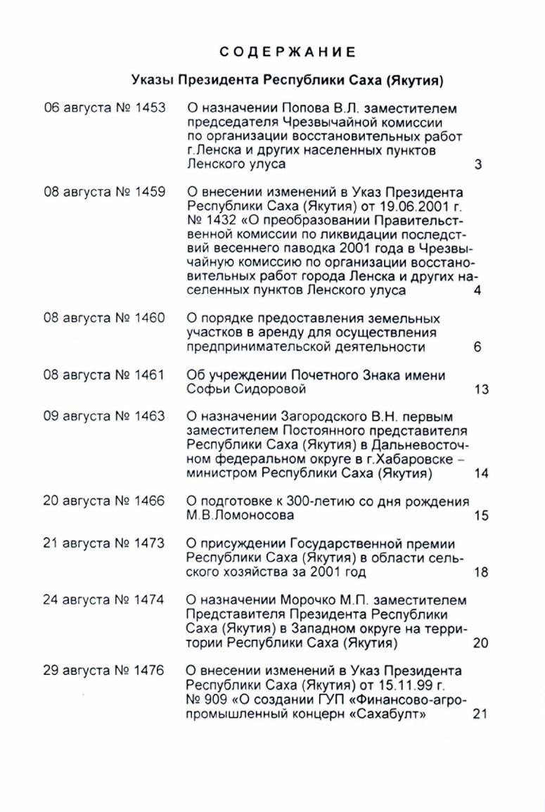 Сборник указов и распоряжений Президента Республики Саха (Якутия)