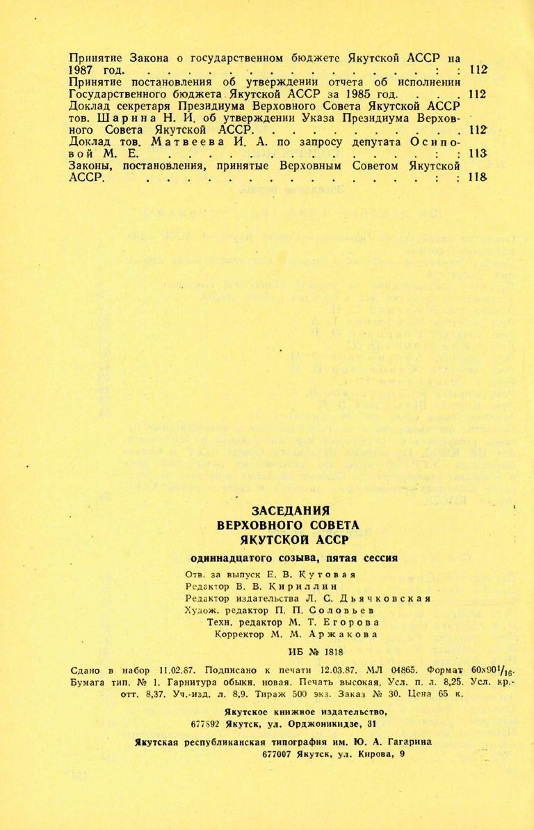 Заседания Верховного Совета Якутской АССР одиннадцатого созыва : стенографический отчет / . - Якутск : Якутское книжное издательство, 1986.