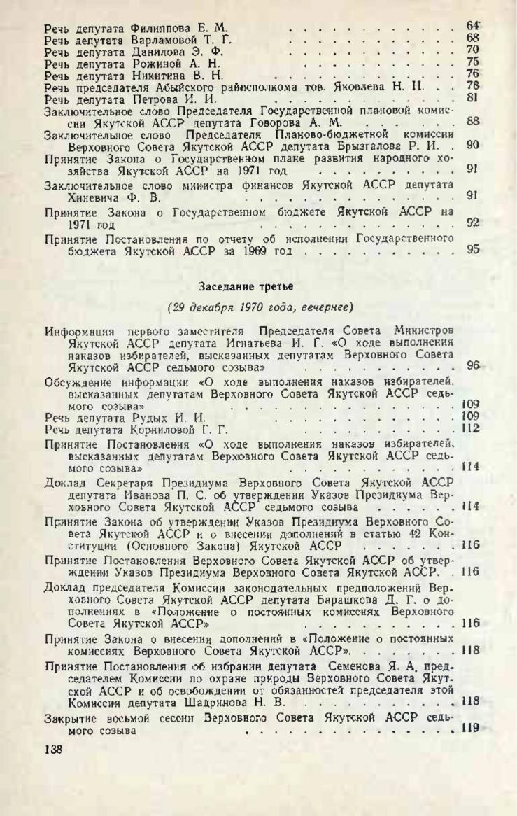 Заседания Верховного Совета Якутской АССР седьмого созыва (восьмая сессия) 28—29 декабря 1970 года: стенографический отчет