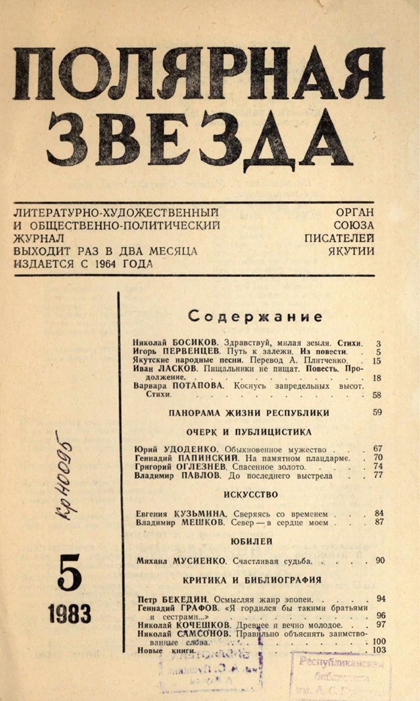 Полярная звезда : литературно-художественный и общественно-политический журнал / . - Якутск : [б. и.], 1956-.