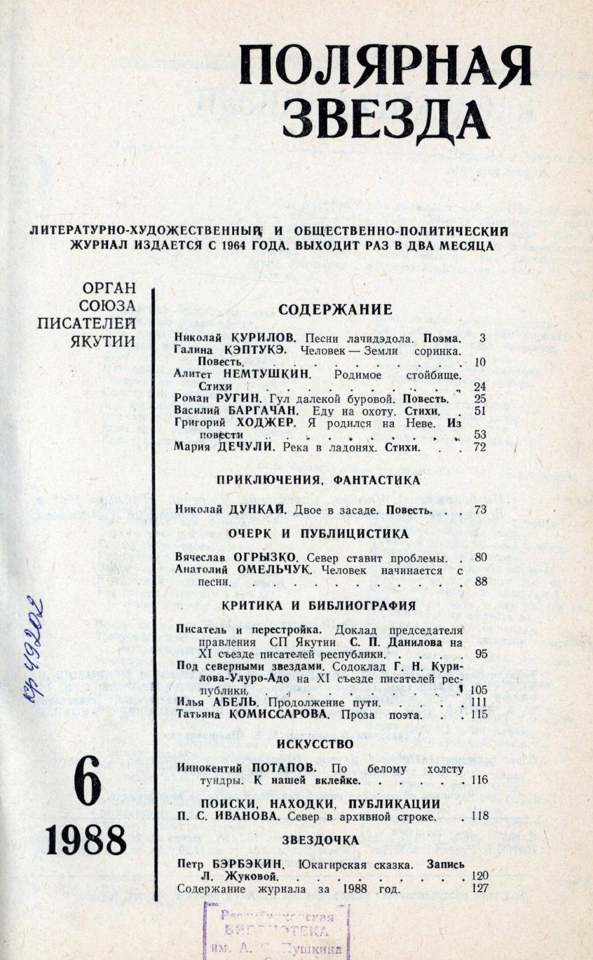 Полярная звезда : литературно-художественный и общественно-политический журнал / . - Якутск : [б. и.], 1956-.