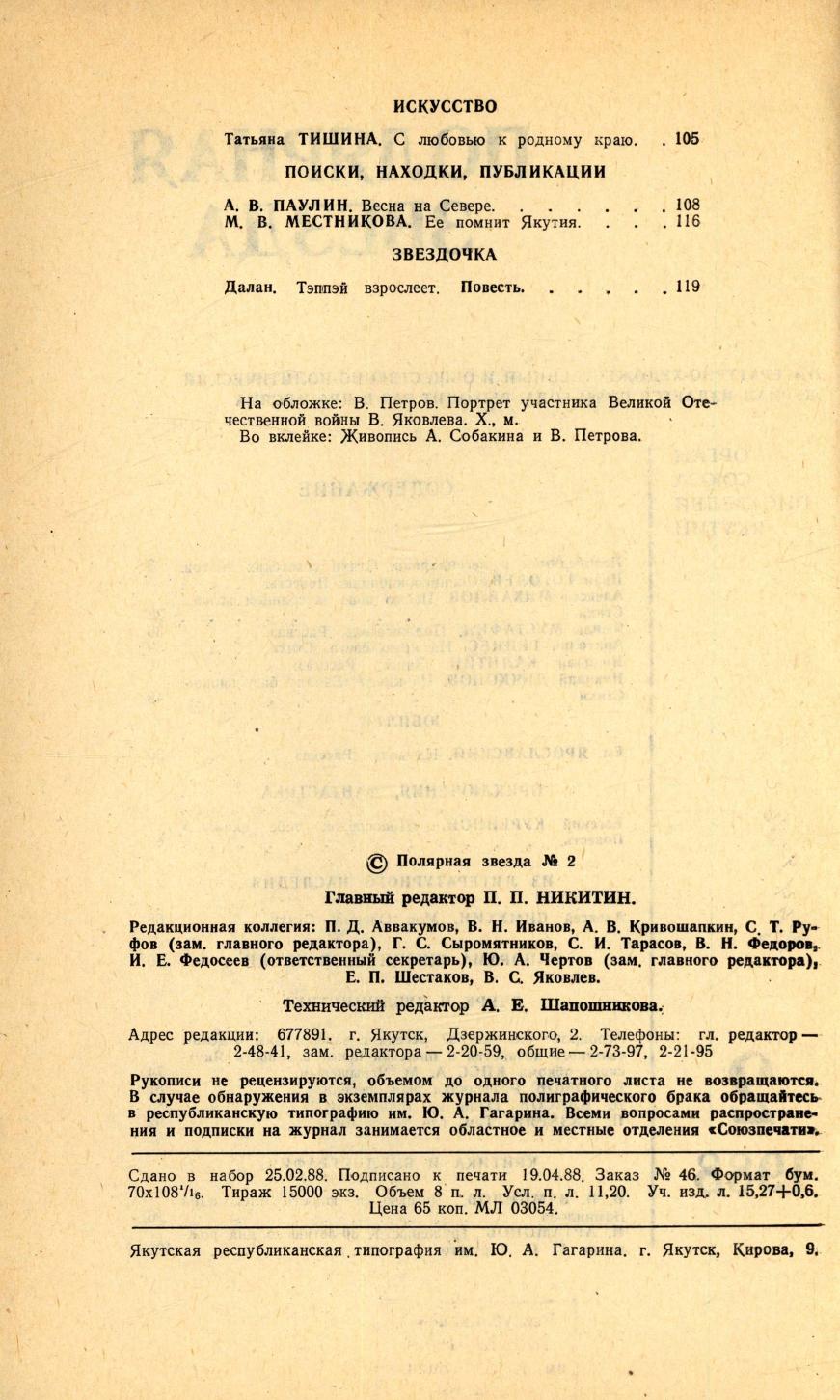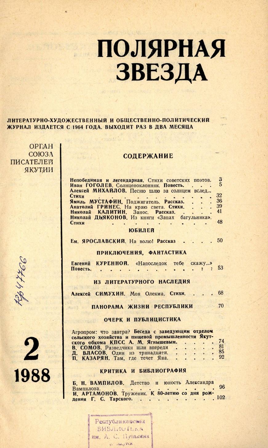 - Периодические издания Якутии (конец XIX – XXI вв.) > Журналы > Полярная звезда > 1988,