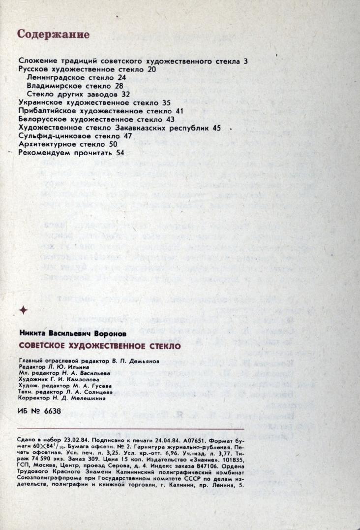 Советское художественное стекло / Н. В. Воронов. - Москва : Знание, 1984. - 55 с.