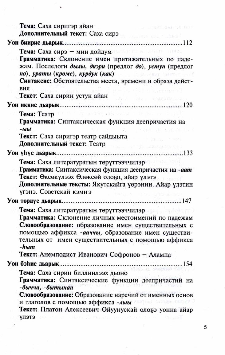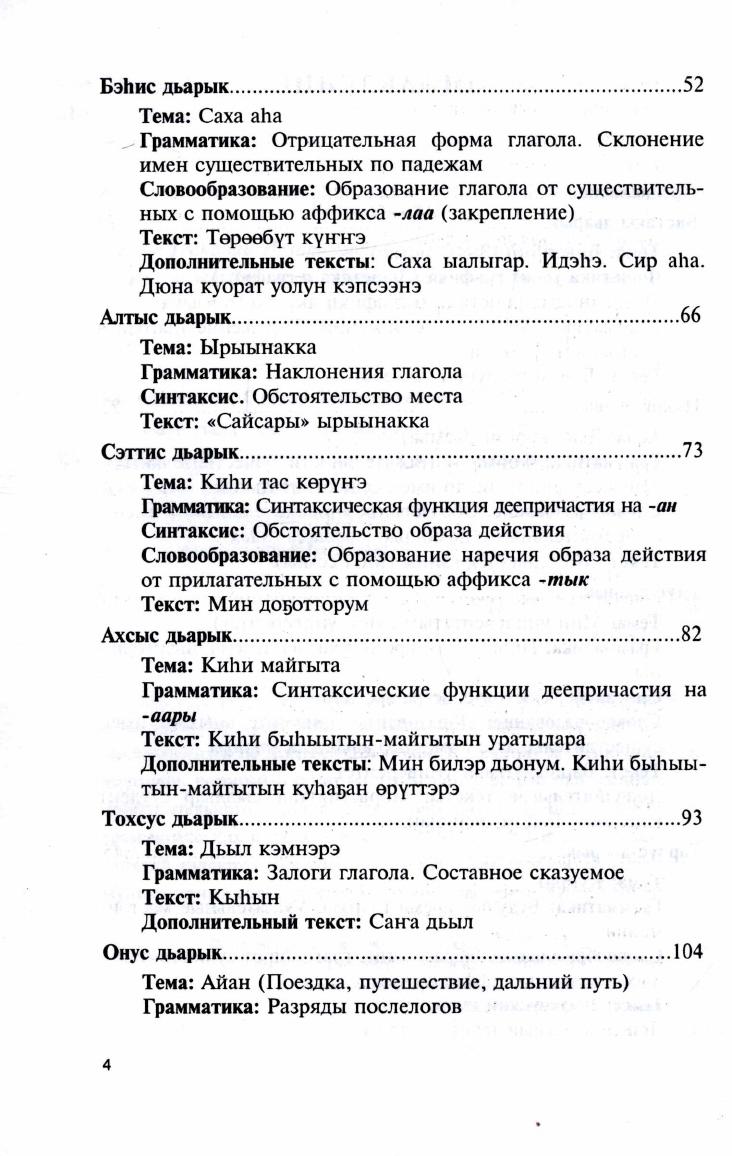 Самоучитель адресован широкому кругу изучающих разговорный якутский язык интенсивными методами. Учебный материал преподносится по лексическим темам. К каждому занятию подобран материал, который состоит из лексической разработки, основного и дополнительных текстов, грамматических сведений, лексических, грамматических и фонетических упражнений. Основными задачами занятий являются обогащение и активизация словаря, развитие коммуникативных способностей (навыков говорения, аудирования)