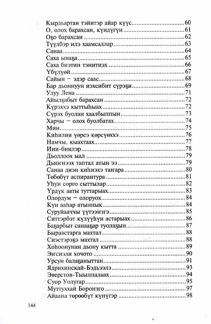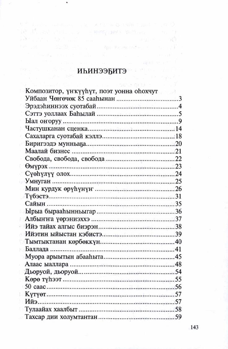 - 2. Бубякин-Чөҥөчөк Иван Афанасьевич. Кэл бэттэх, кэнсиэртиэх: сценкалар, чабырҕахтар, үгэлэр, хоһооннор, хоһоонунан таабырыннар, кэпсээн